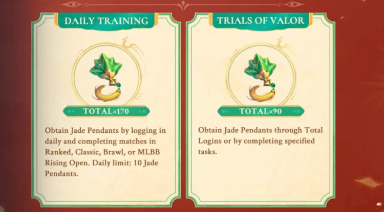 - Verdiene bis zu 90 Jade-Anhänger, indem du bestimmte Missionen erfüllst, einschließlich kumulativer Logins und anderer ereignisspezifischer Aufgaben.